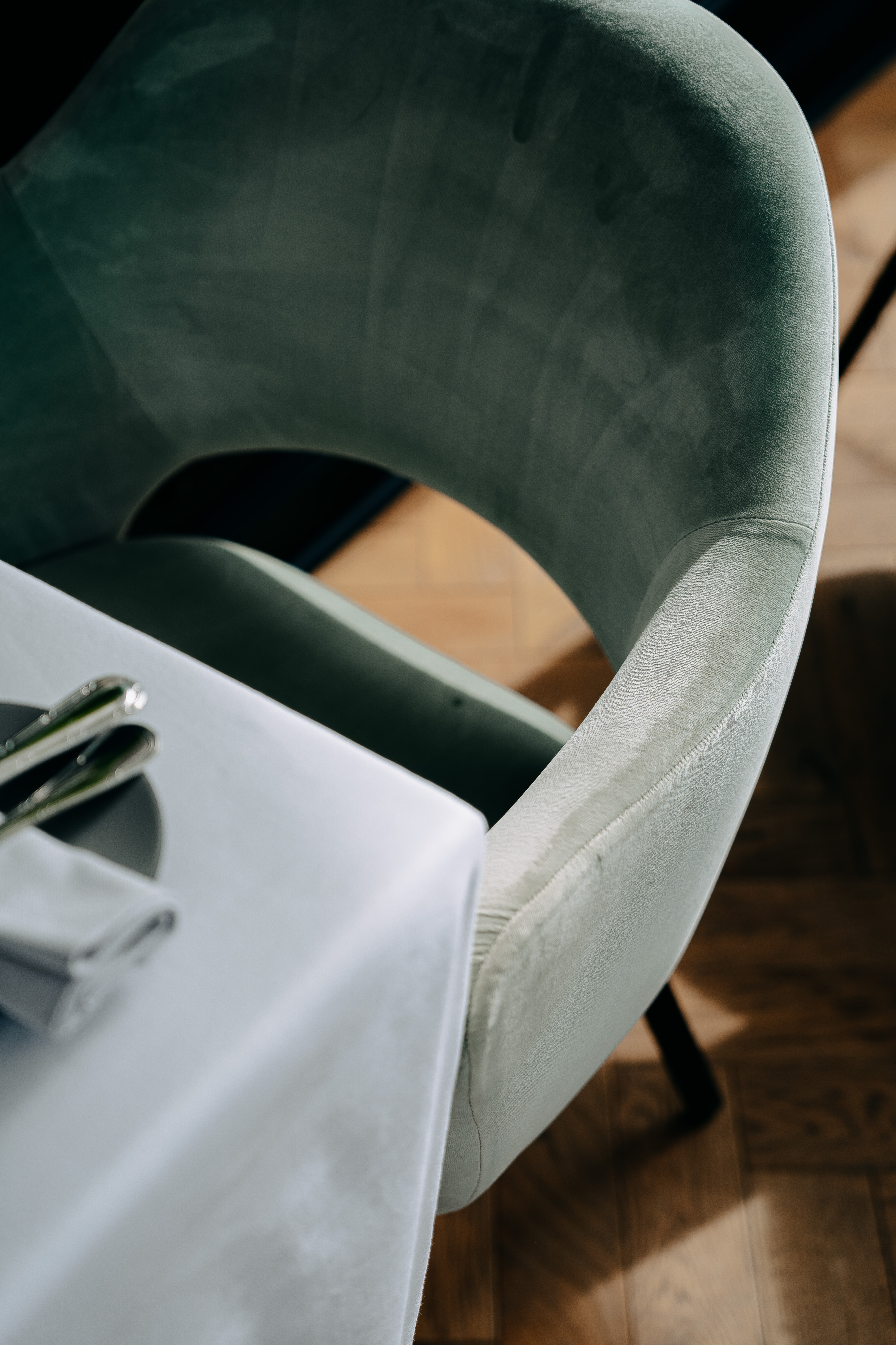En 2018, d’importants travaux ont été entrepris pour renouer avec les temps fastes de la cité thermale. Au sol, un parquet en bâtons rompus d’origine. Au plafond, des moulures stuquées évoquant l’emprise architecturale de l’Art nouveau dans la station reine. Des tapisseries contemporaines esquissent des marbrures dorées sur fond bleu nuit comme les boiseries surmontées de superbes appliques laiton style Art déco, en phase avec les verrières en arcade créées en 1931 lors de l’agrandissement du restaurant.
