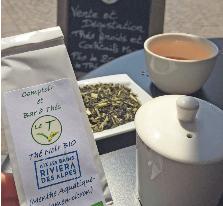 Au Comptoir le T, vous avez le choix entre 230 variétés de thés et tisanes bio notamment de Chine, du Japon, d’Inde, de Ceylan , du Viet-Nam … avec des particularités à l’instar du thé « Aix Riviera », évidemment aux parfums de menthe lacustre et de cyclamen.