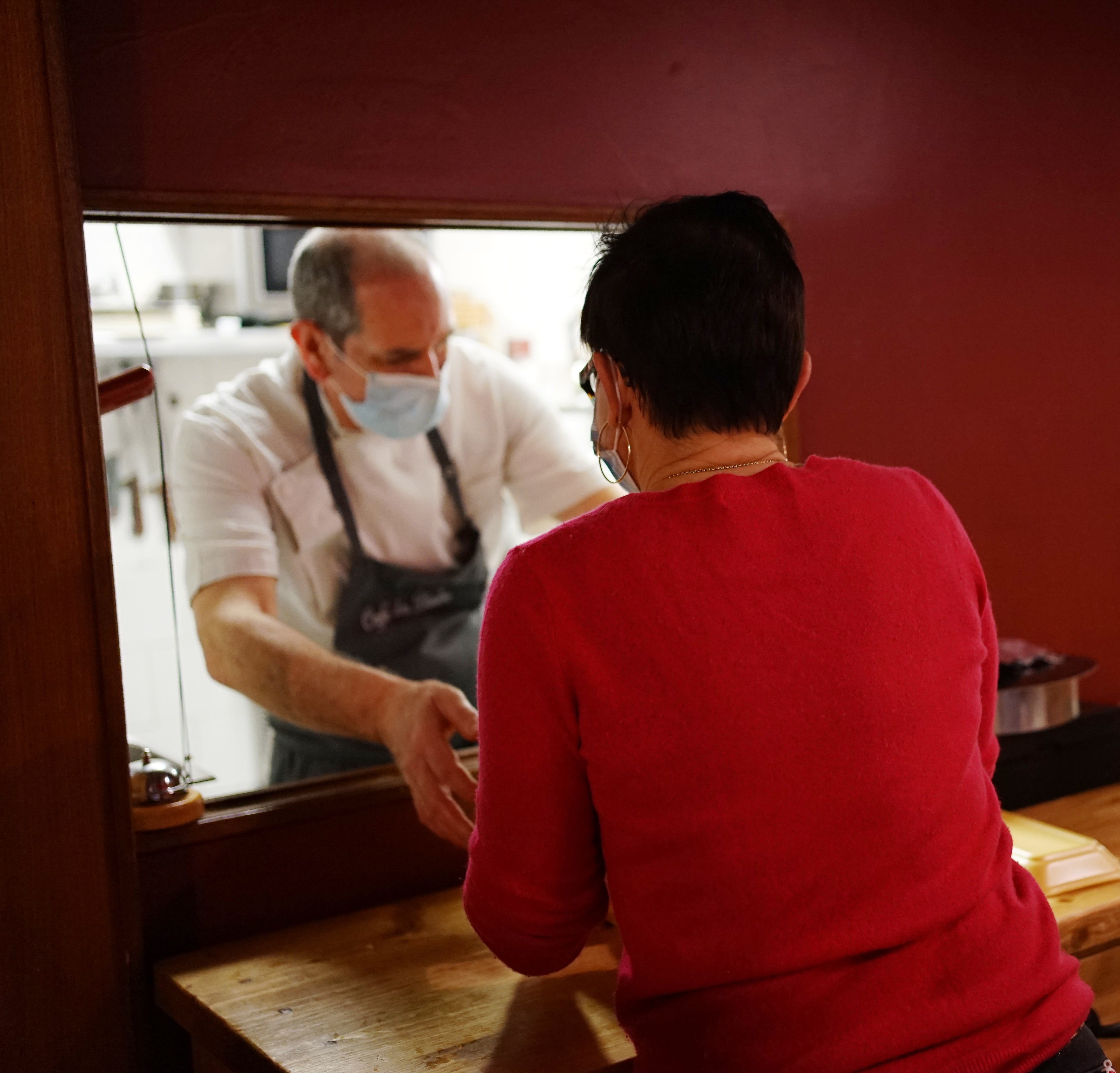 A l’intérieur, au dessus du passe-plat, par lequel on aperçoit Bruno en cuisine, l’ardoise met l’eau à la bouche. Le menu du jour est – comme dans toute bonne maison – travaillé avec les produits de saison et locaux. La cuisine est essentiellement inspirée de recettes traditionnelles. Les plats mijotés ont la part belle. Pommes de terre et légumes proviennent pour la plupart d’un maraîcher chautagnard. Les viandes sont fournies par les abattoirs d’Hotonnes dans le Bugey. On craque alors aisément pour le burger 100% charolais du moment.