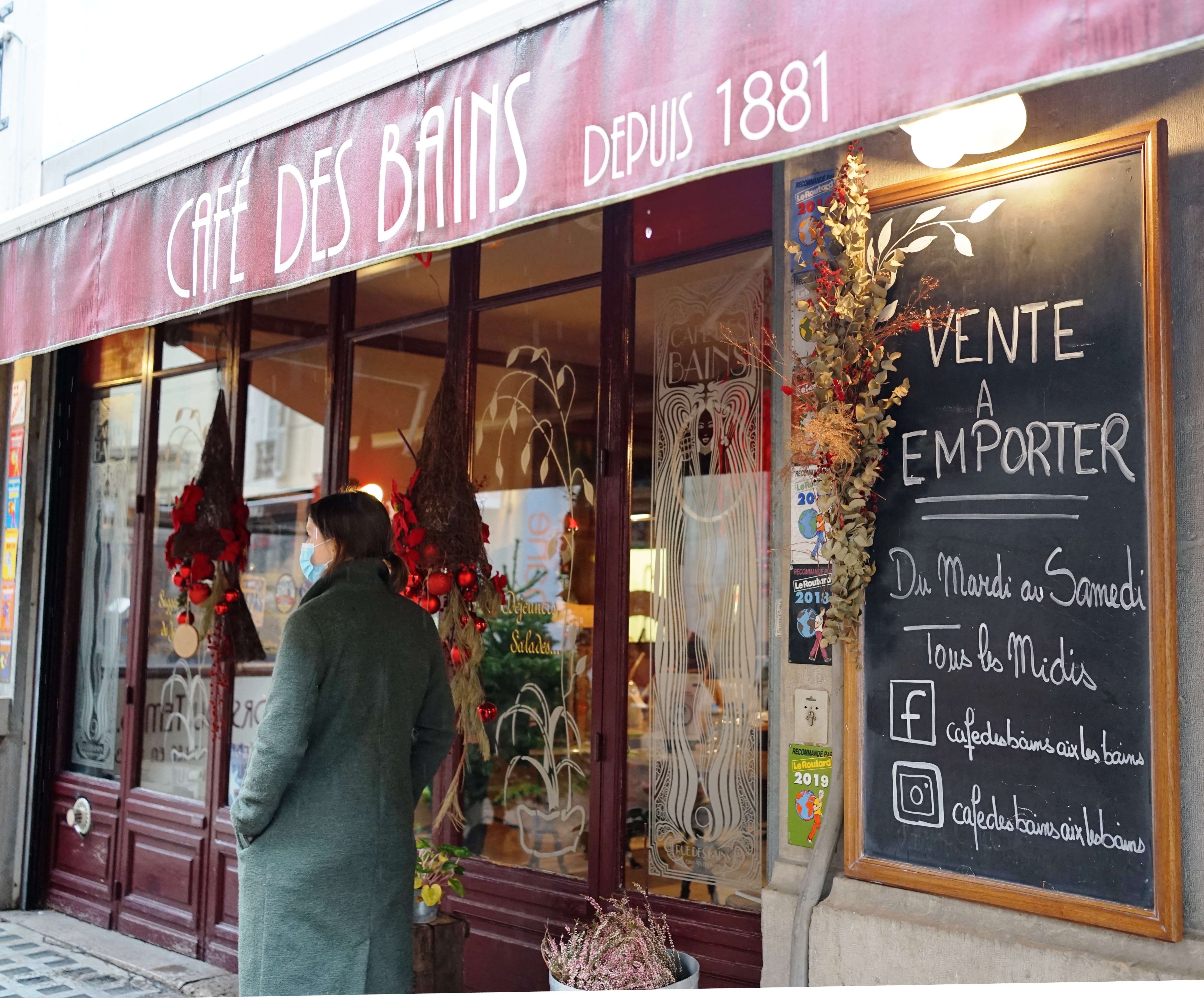 Mais voilà qu’une musique jazzy saisit l’ouïe – sans l’importuner. Une touche de gaieté supplémentaire comme cette coquette terrasse prisé aux beaux jours pour sa fraîcheur. Aux murs, guettez les portraits des personnalités qui ont fréquenté jadis ce tout petit café, par la suite agrandi. Vous reconnaîtrez sans doute le portrait de la Reine Victoria, que tout Aix s’arrache. Parcourez les inscriptions sur plaques dorées apposées au mobilier, ravivant la mémoire de grands noms comme celui du poète Paul Verlaine, de l’actrice Greta Garbo (La Reine Christine, Anna Karenine… ) ou de l’Aga Khan qui en avait fait son QG... Le Café des Bains en conserve l’illustre souvenir Cette sommité indienne aurait offert un Louis d’or à la fille des propriétaires de l’époque pour sa communion. Et si vous lancez Valérie, elle pourrait vous parler de ce vieux poste radio que lui a léguée sa bien-aimée grand-mère, qui tenait une pension dans les Bauges. « Dans l’air du temps, hors du temps« , telle est la devise du Café des Bains.