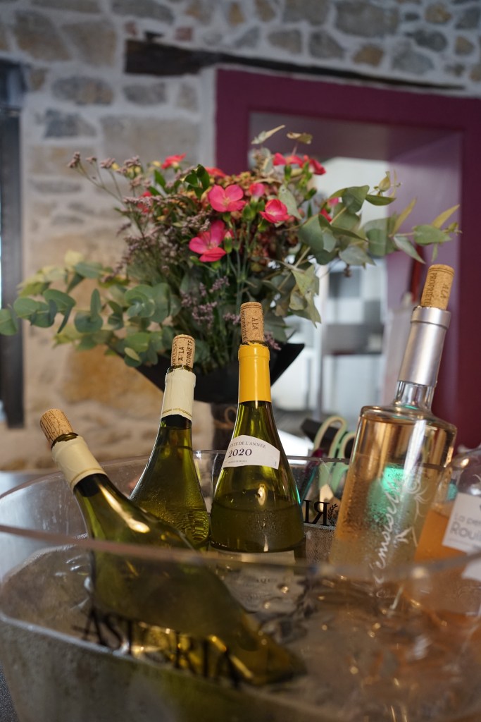 A l’intérieur, place à la gaité. Au grand mur tout de pierres rustiques vêtues, se juxtaposent des couleurs lumineuses. Sur le comptoir, règne en maître un beau bouquet, jugeant les viennoiseries attendant les plus matinaux. Une ouverture donnant vue sur la cuisine permet à la lumière naturelle de rythmer la journée bien chargée et de mettre en appétit les clients qu’on devine nombreux à s’attabler pour le déjeuner.