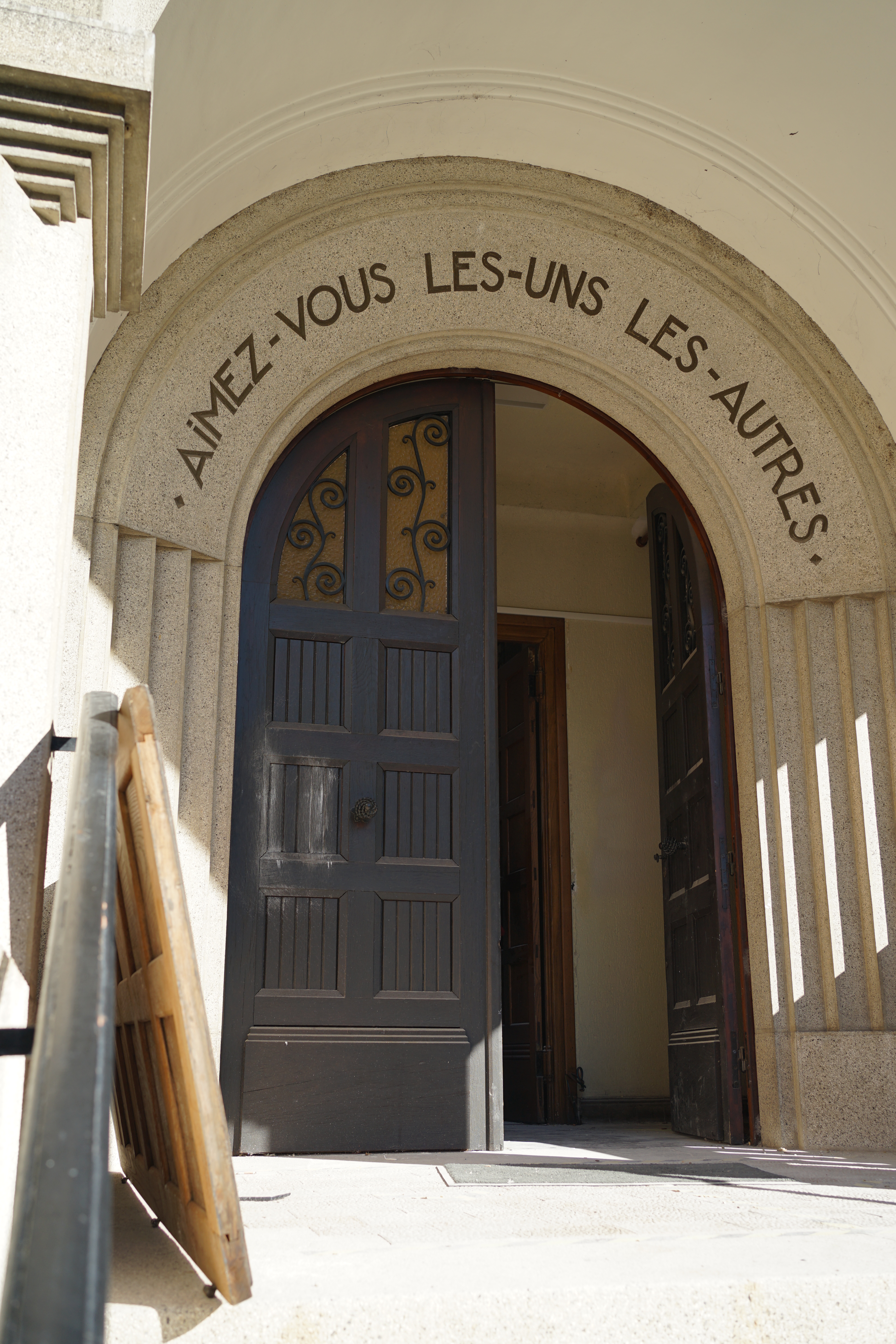 « Aimez-vous les uns les autres », voilà injonction biblique qui a tout lieu d’étonner l’observateur averti. Que fait une telle inscription sur ce bâtiment du XXème au corps massif abritant qui plus est un club de bridge ? Certes, on distingue un sobre clocher … Reconnaissez que ce n’est pas commun. Encore un héritage du thermalisme cosmopolite qui a marqué l’histoire d’Aix-les-Bains. A la (re)découverte de l’Estal.