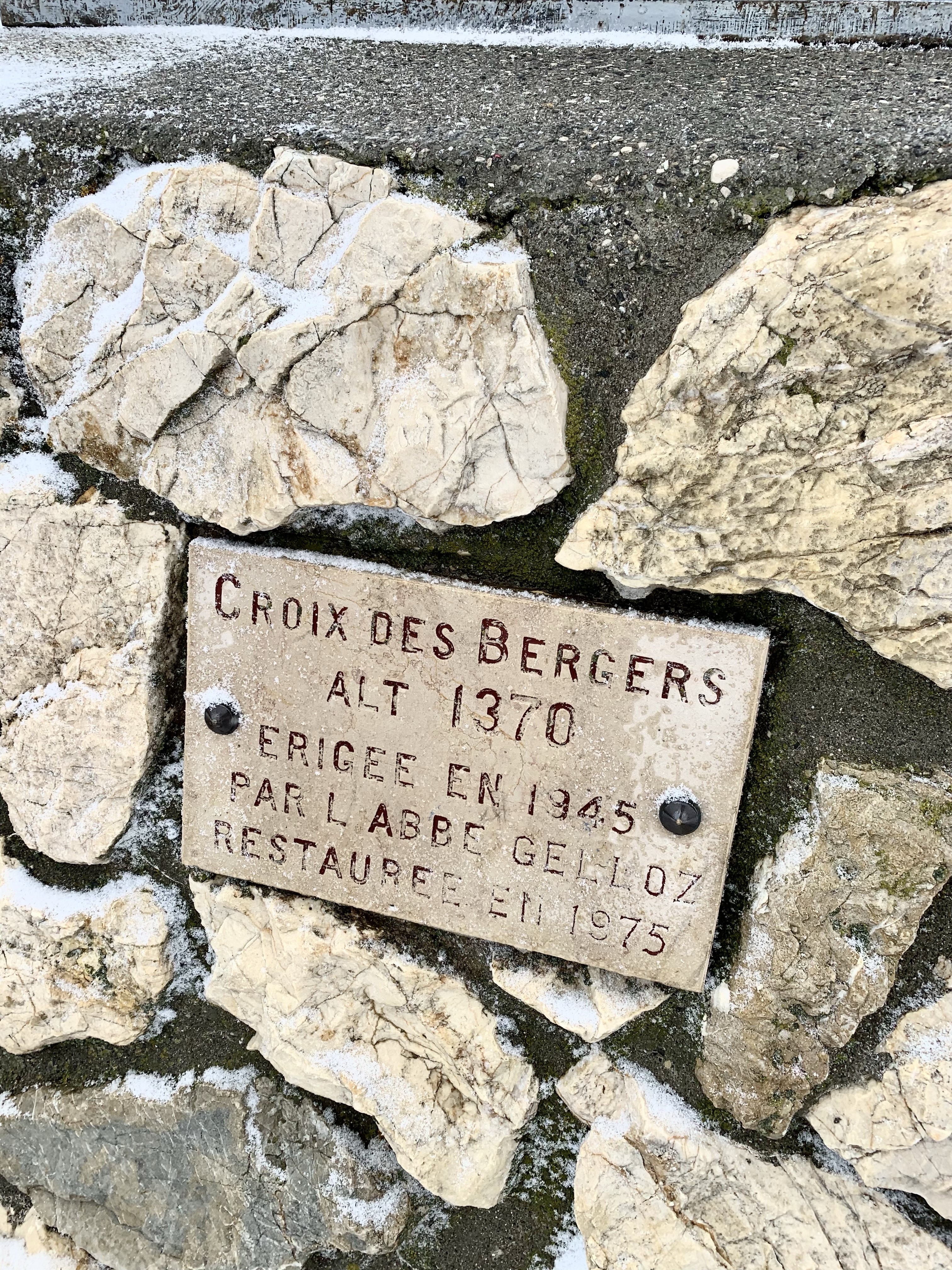 Arrivée à la Croix des Bergers, au sommet du Mollard. Tout est relatif, car comme son nom l’indique en patois, le mollard est avant tout une petite montagne (cf. le Mollard de Vions en Chautagne et tant d’autres lieux-dits en pays de Savoie). Ne vous attendez pas à l’effet « Waouh » ! Appréciez le chemin parcouru, en retrouvant la Montagne des Ébats et sa piste de ski taillée dans la forêt ainsi que l’ancien téléphérique du Revard. Admirez l’environnement pittoresque des Bauges : de gauche à droite, le Mont Trélod (2181 m), la Pointe d’Arcalod (2217 m) derrière, ainsi que le Mont Colombier (2045 m). Au Nord-Est, derrière le Roc des Bœufs, La Tournette.