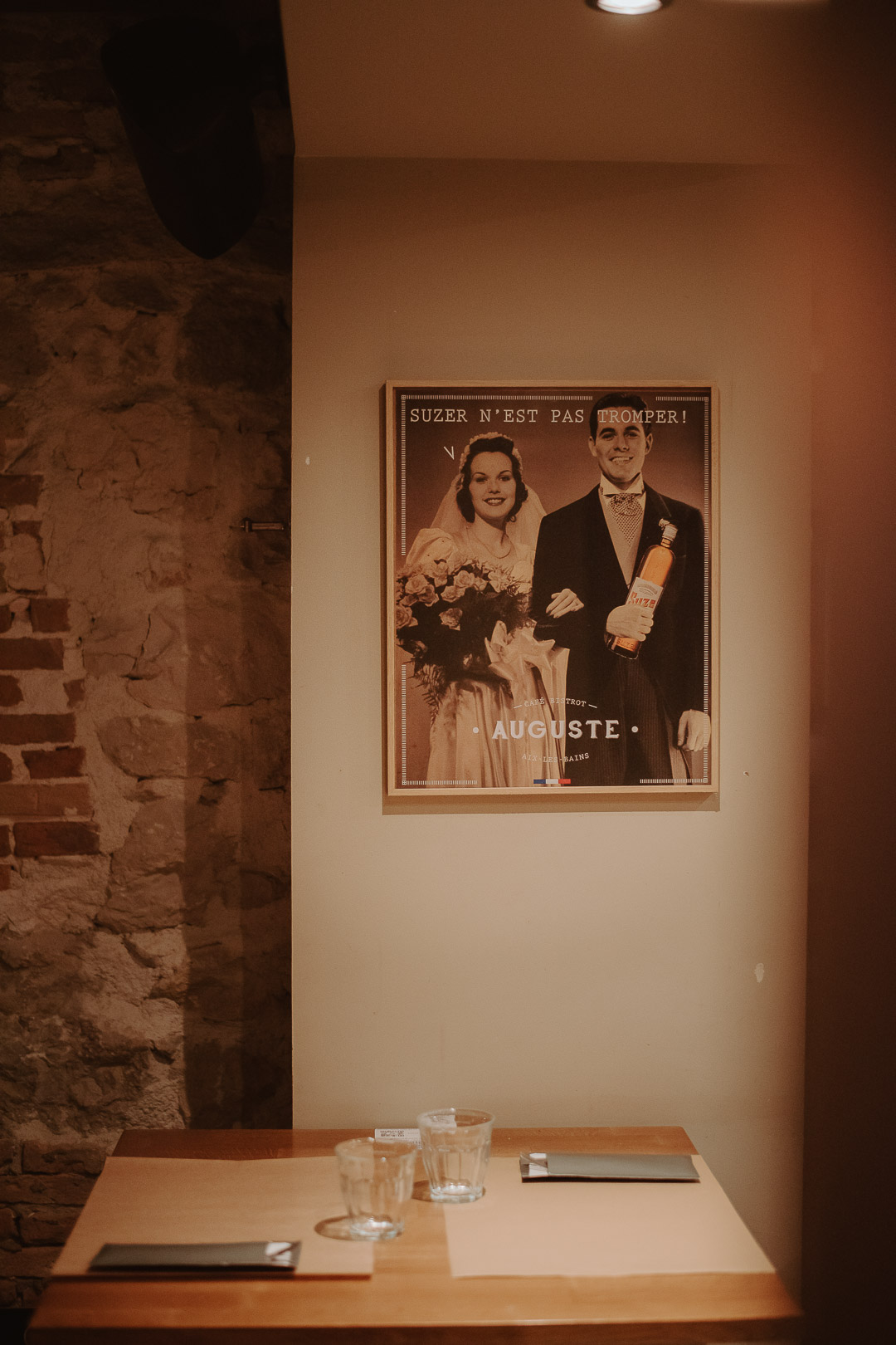 Ce qui fait l’unanimité, outre son look soigneusement rétro travaillé par Guillaume, l’un des trois gérants, c’est sans doute la camaraderie qui y règne. Auguste n’est pas qu’un mirage du passé, ce lieu géré par Gary côté bar respire une certaine joie de vivre. Alors, oui, Auguste cultive une ambiance « à l’ancienne », même une certaine philosophie rabelaisienne décomplexée.