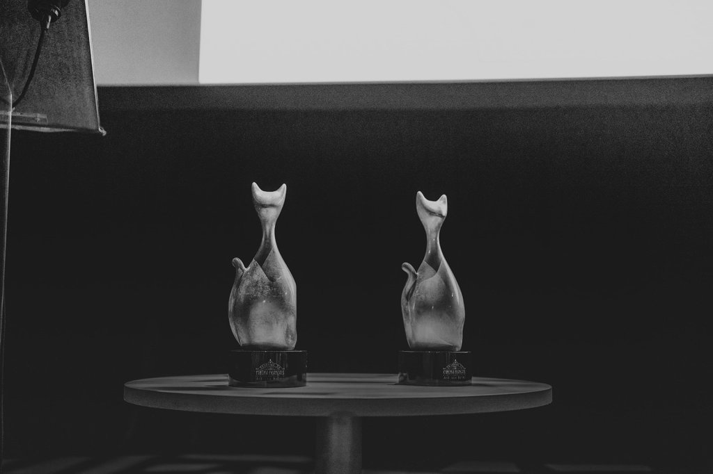 Ils sont ensuite rejoints par l’artiste Leloluce qui a façonné les trophées du festival. Des récompenses félines, dorées, répondant du nom de « lelocat ». L’oeuvre signature de l’artiste plasticienne a été déclinée déjà pour de grandes marques du luxe et a été conçue cette fois comme un hommage au sommet de la Dent du Chat qui surplombe le Lac du Bourget. Voilà un autre signal envoyé : les talents sont mis à l’honneur. par le festival fier de son ancrage aixois.